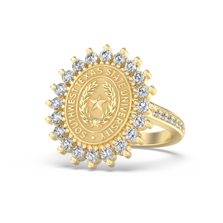 San Jose Jewelers proudly designs and manufactures all Southwest Texas State University graduation rings in Waco, Texas. Each piece in our collection is officially licensed by Southwest Texas State University, ensuring authenticity and quality. While many of our SWT signet rings and fan rings are not classified as official Southwest Texas State Class Rings, we recommend confirming with the university if you plan to wear them during official class ring ceremonies. Regardless of the occasion, each ring is a powerful symbol of your Bobcat pride and academic accomplishments.