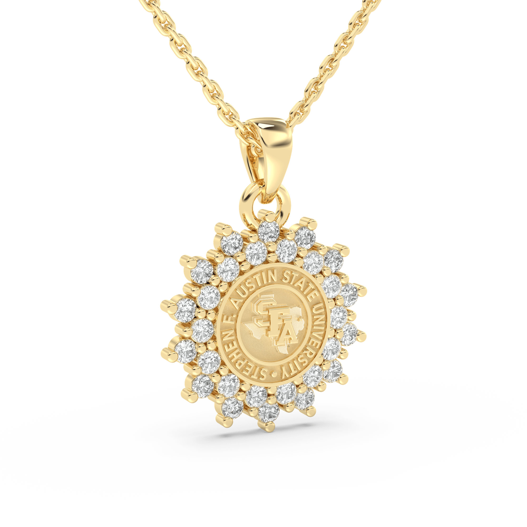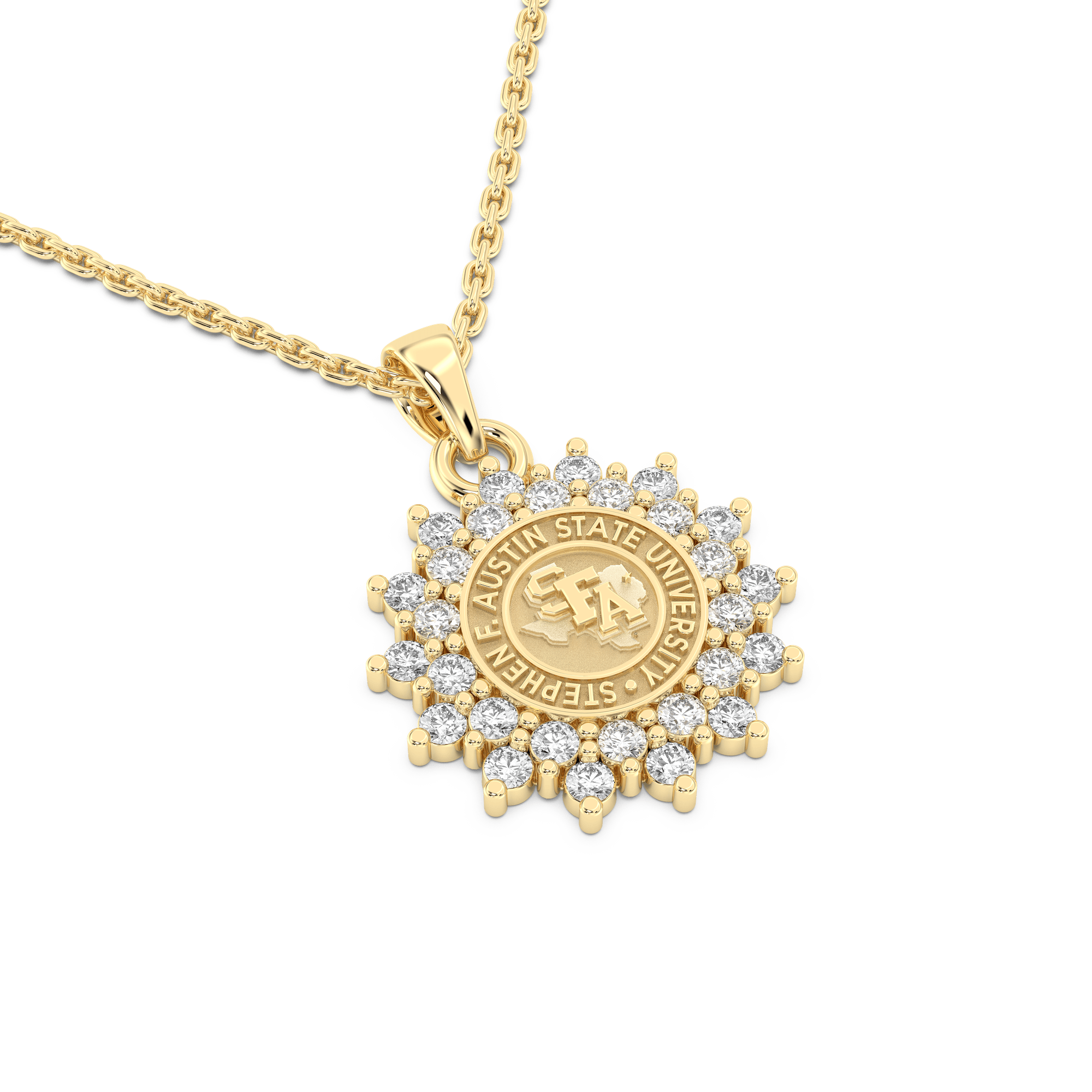 The Success 177 Stephen F. Austin State University Pendant is perfect for those seeking a memorable and eye-catching way to celebrate their academic achievements. Make it the focal point of any occasion, and let your university pride shine.