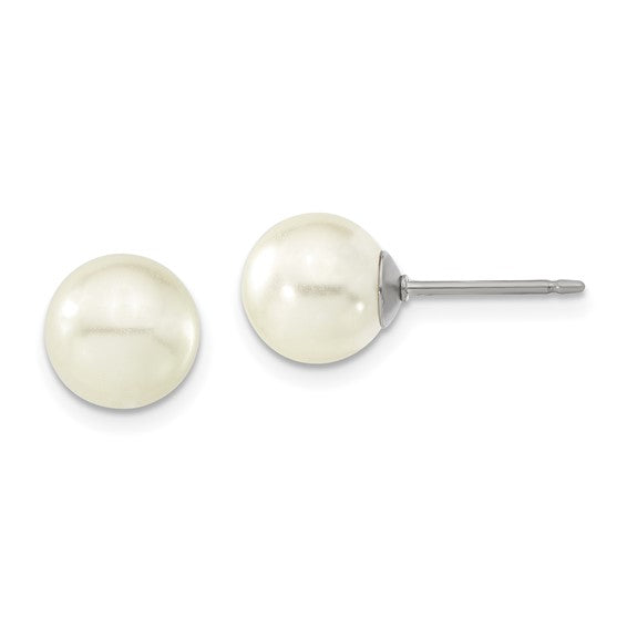 Add a touch of classic elegance to your look with these beautiful 8mm pearl stud earrings—where timeless charm meets modern durability.