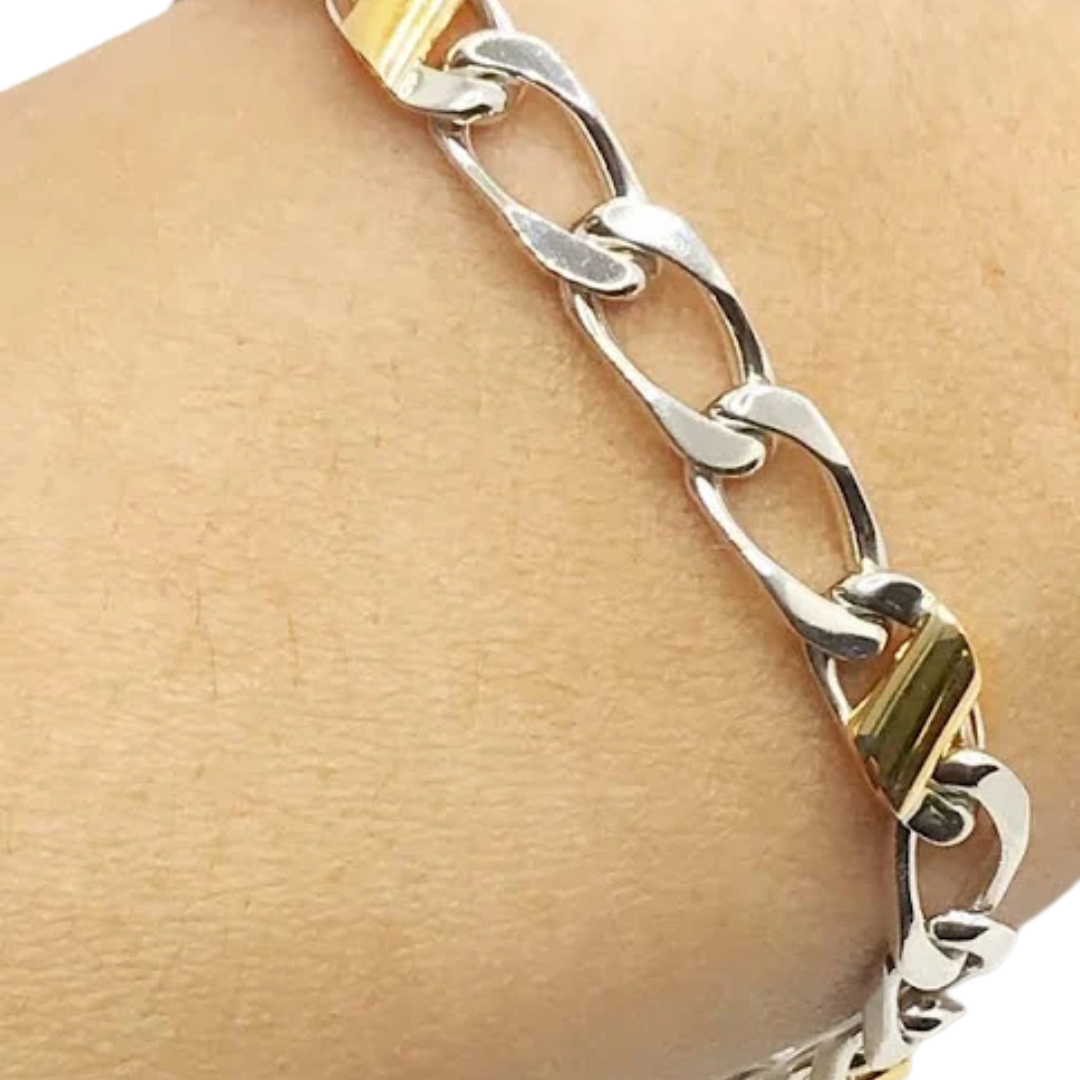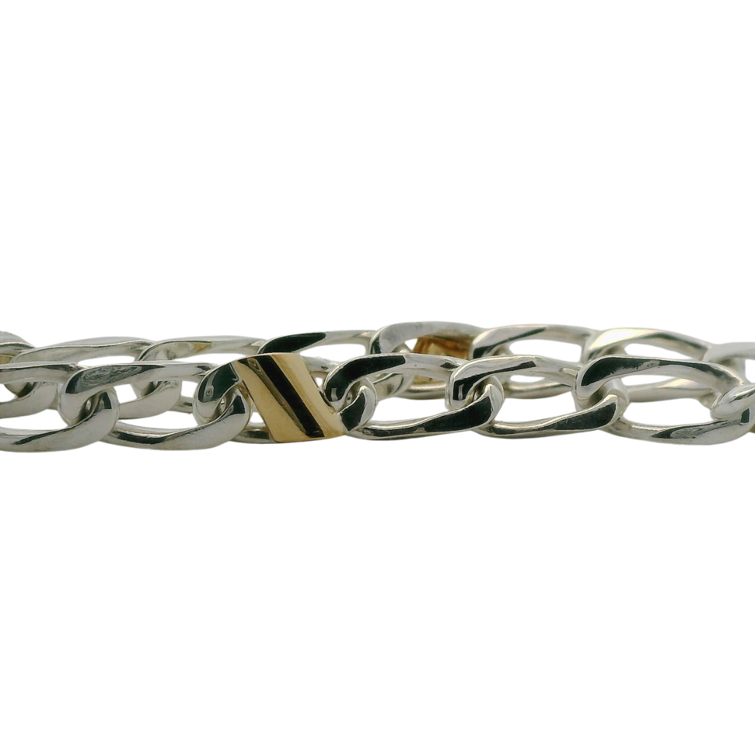 - Signature Mixed Metals: Features high-shine sterling silver links expertly accented with genuine 18k yellow gold for a sophisticated contrast.