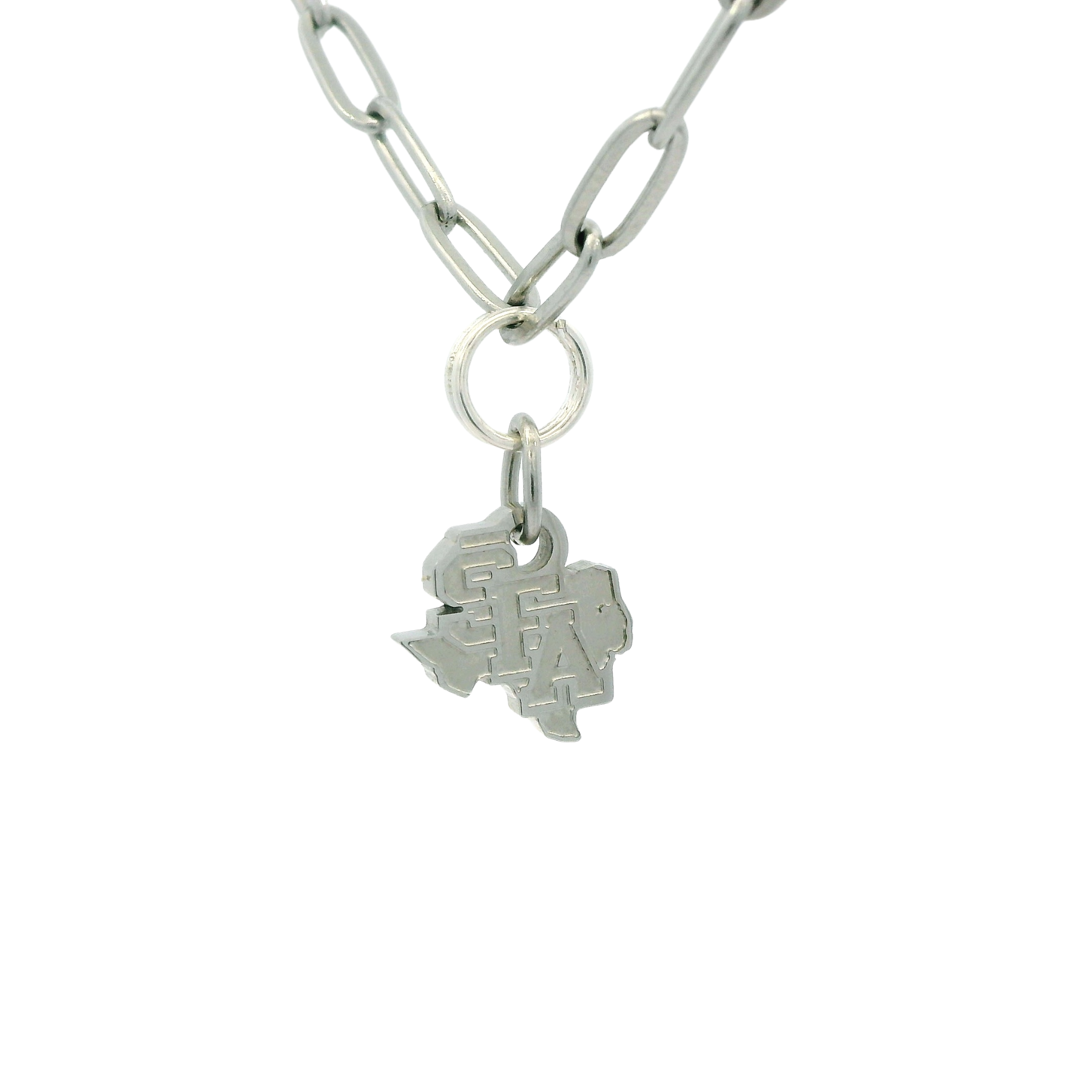 Show your SFA spirit everywhere you go with our exclusive SFA Charm Bracelet Collection, featuring beautifully crafted Texas SFA design. Each charm is designed and crafted by San Jose Jewelers in Waco, Texas.