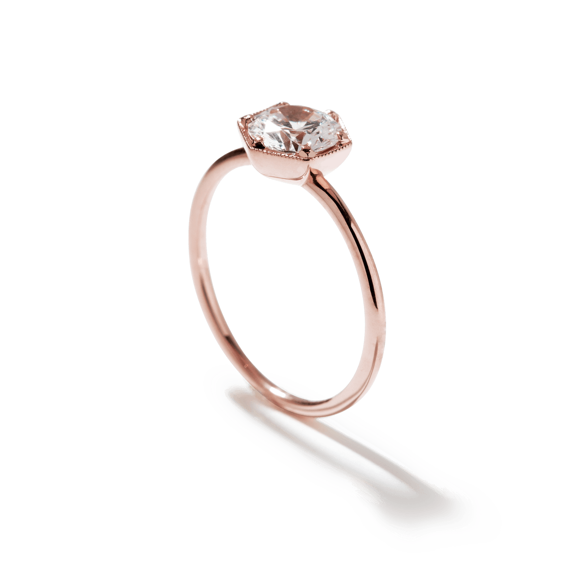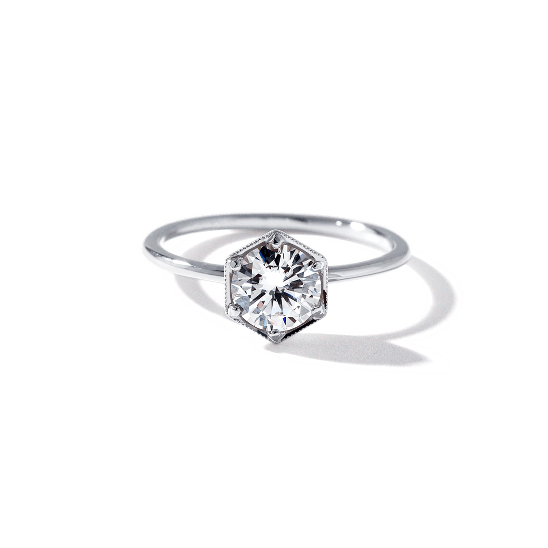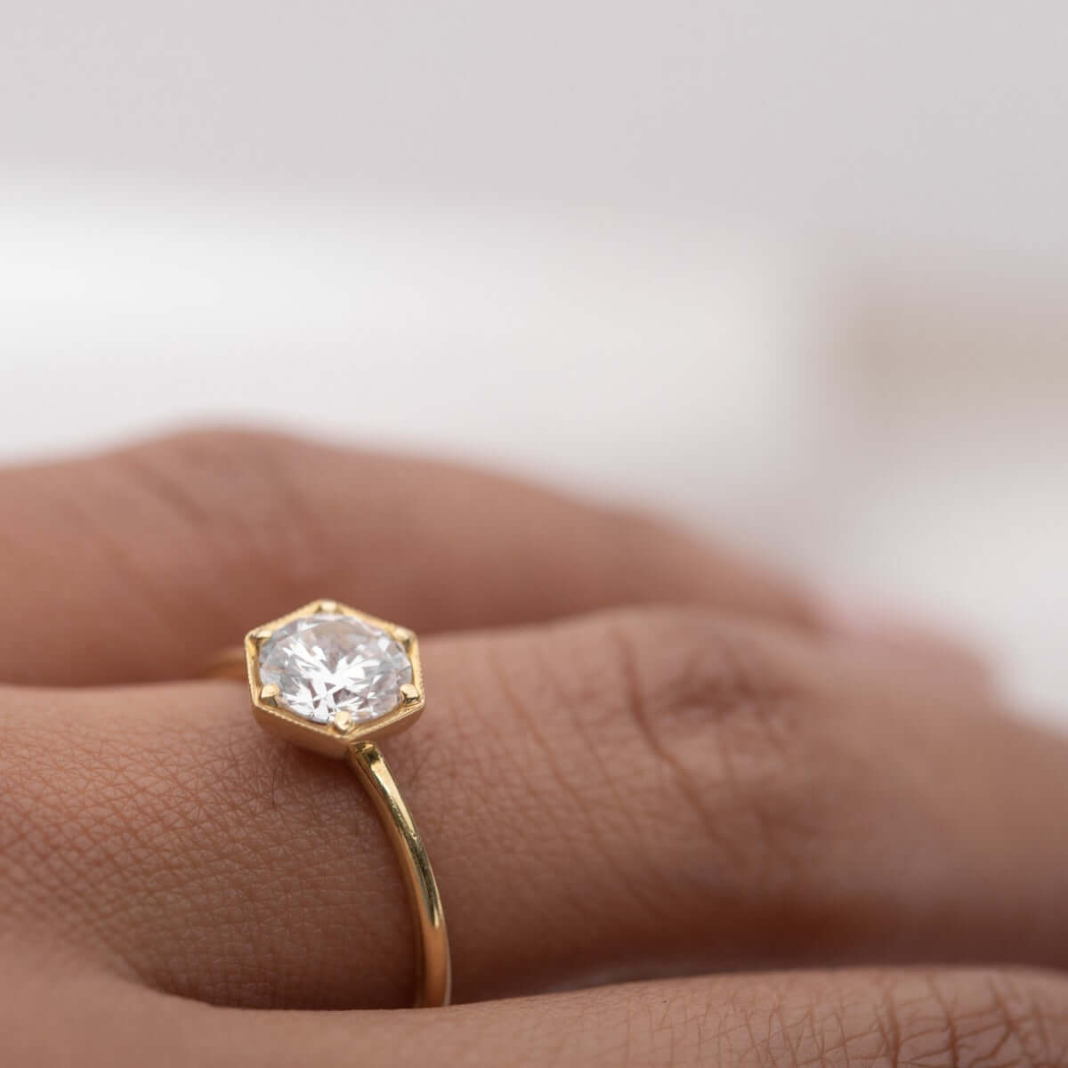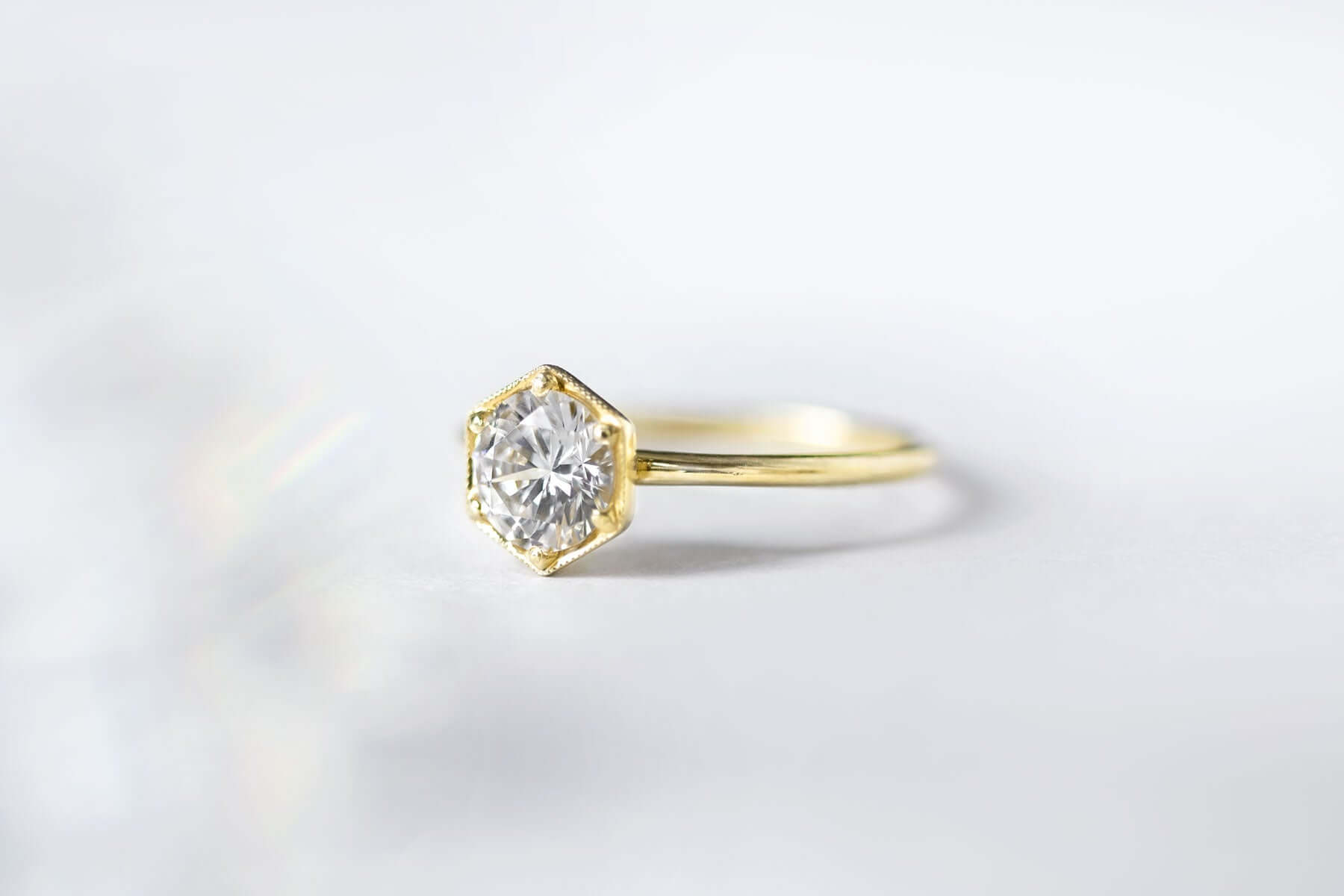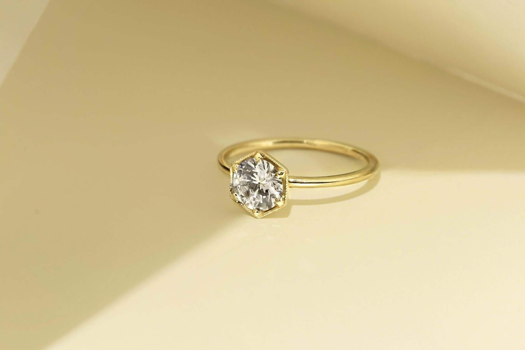 Custom Hexagon Bezel Set Diamond Engagement Ring