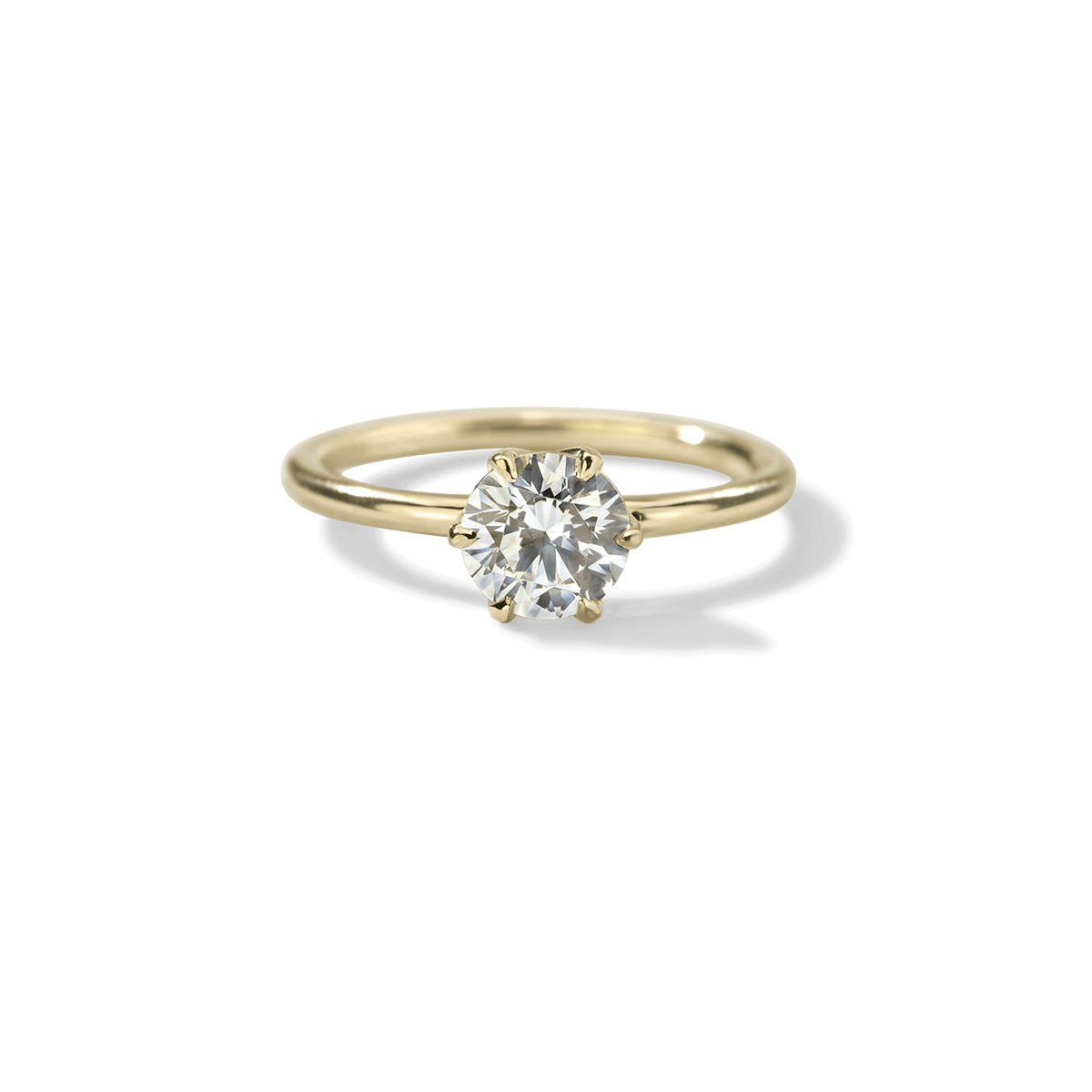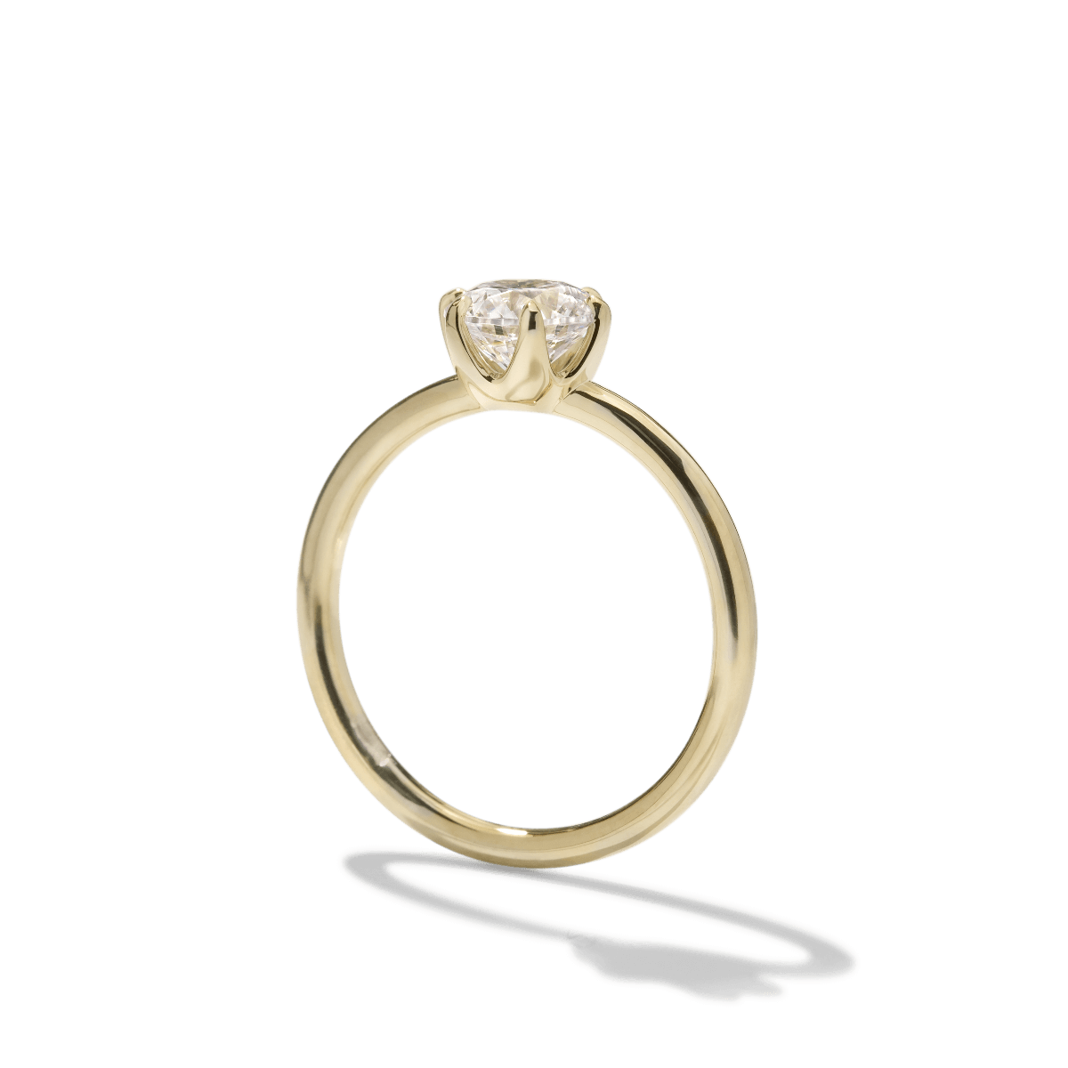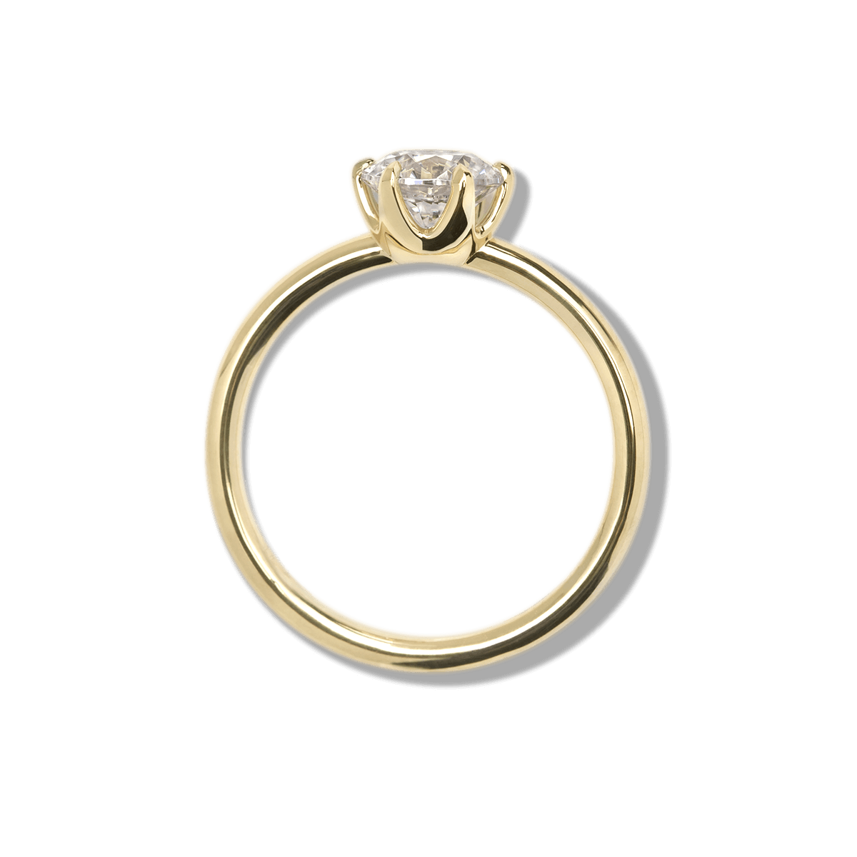 Classic, secure, and endlessly elegant—the 6-Prong Solitaire Diamond Engagement Ring is a timeless design built to showcase the brilliance of your center stone. Crafted in your choice of 18K sustainable gold or platinum, this ring features a slender band and refined 6-prong setting that offers both durability and sophistication.