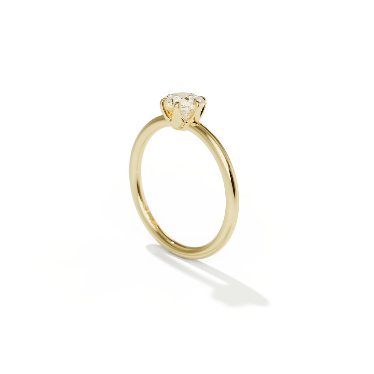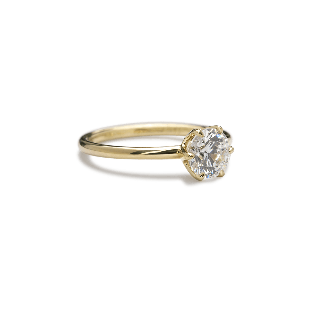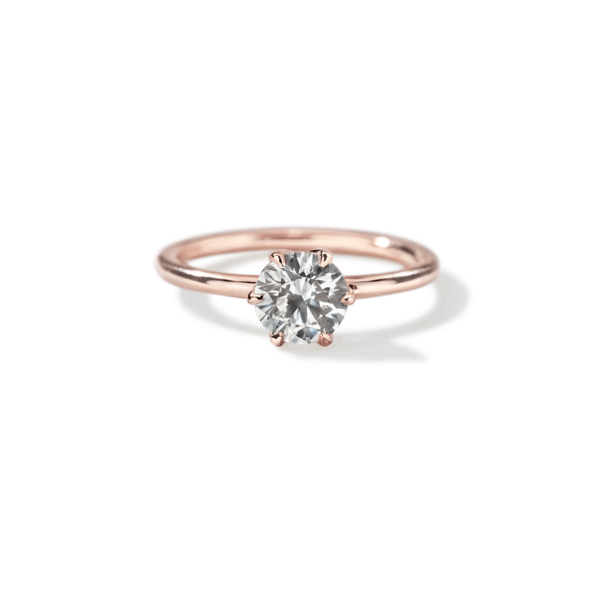 Classic, secure, and endlessly elegant—the 6-Prong Solitaire Diamond Engagement Ring is a timeless design built to showcase the brilliance of your center stone. Crafted in your choice of 18K sustainable gold or platinum, this ring features a slender band and refined 6-prong setting that offers both durability and sophistication.