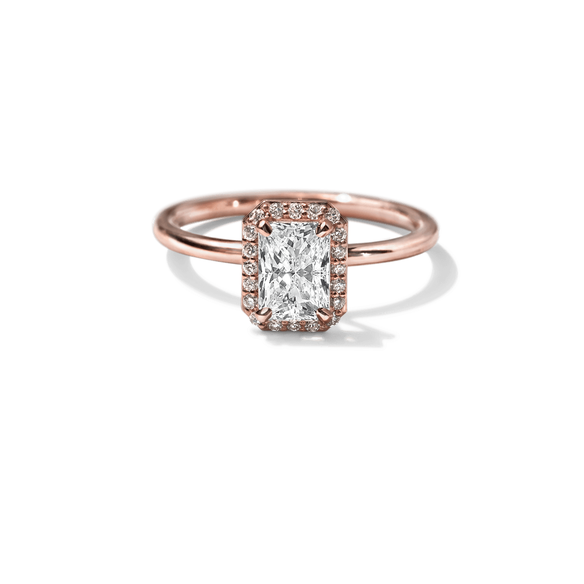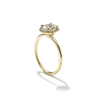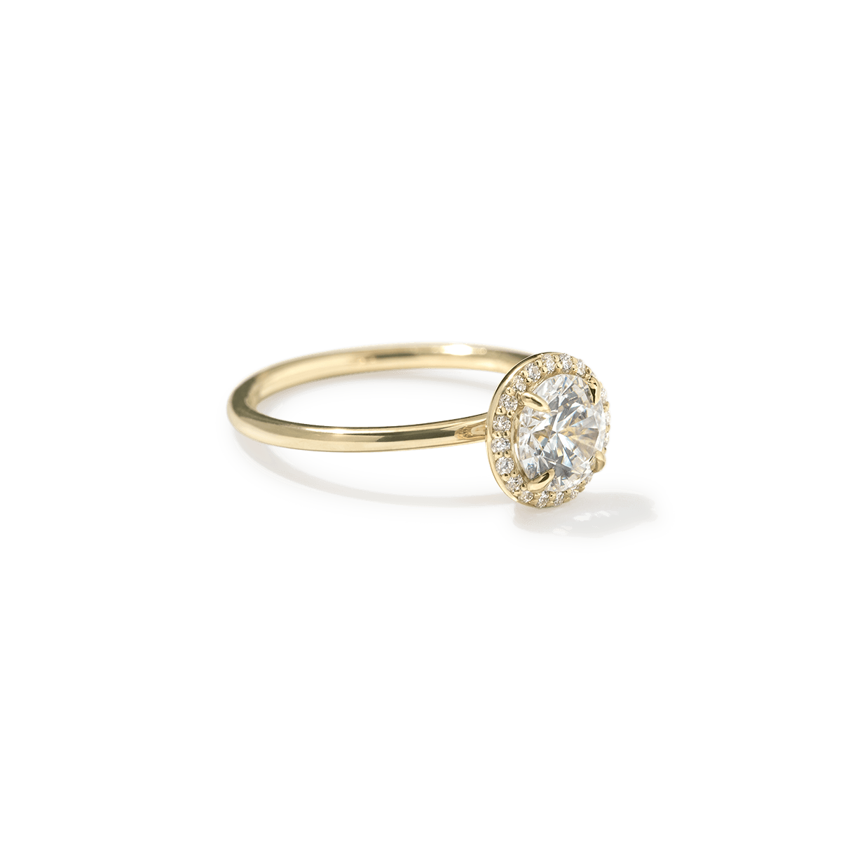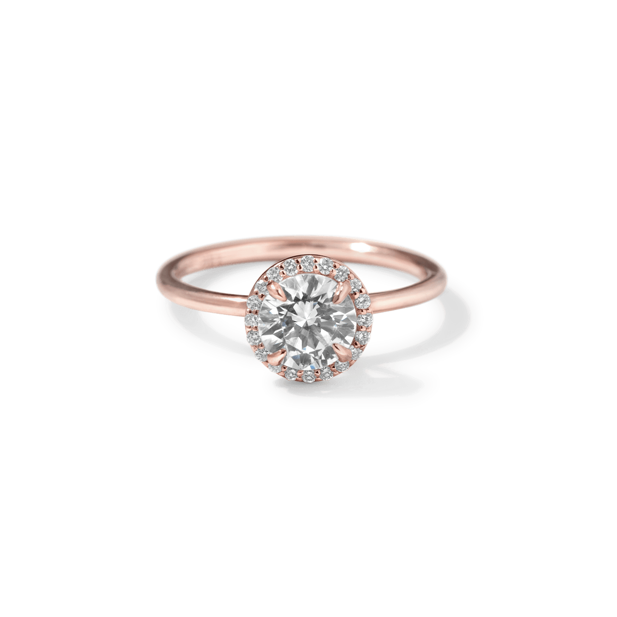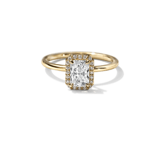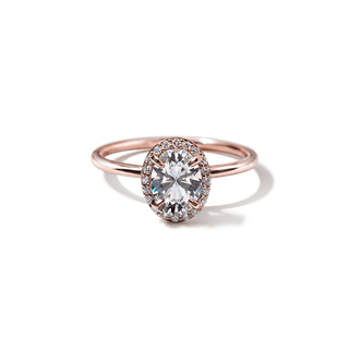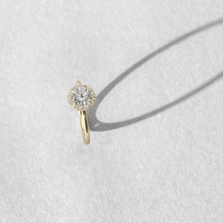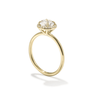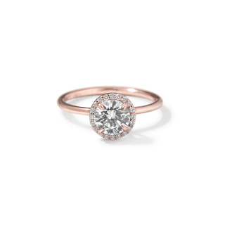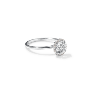 A timeless symbol of love and elegance, the Custom Halo Diamond Engagement Ring offers radiant sparkle with a refined, modern touch. Crafted in your choice of 18K sustainable gold or platinum, this ring features a delicate band and a dazzling diamond halo setting that enhances the brilliance of your chosen center stone.