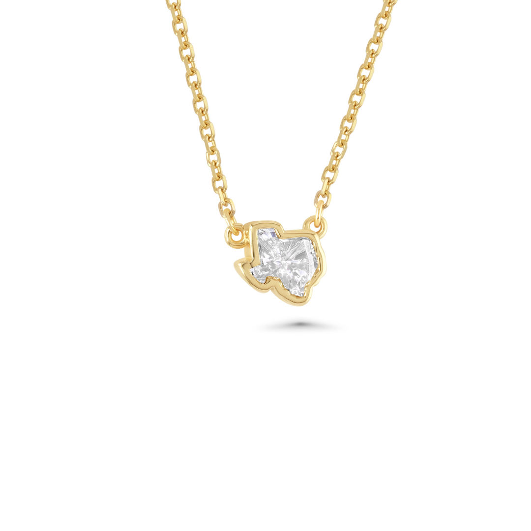 Make a bold yet elegant statement with this solid 1.14 carat Texas-shaped lab diamond necklace, a stunning tribute to Lone Star pride and timeless craftsmanship. Featuring a brilliant Texas-cut diamond, this piece captures exceptional sparkle while celebrating a shape that’s instantly iconic.